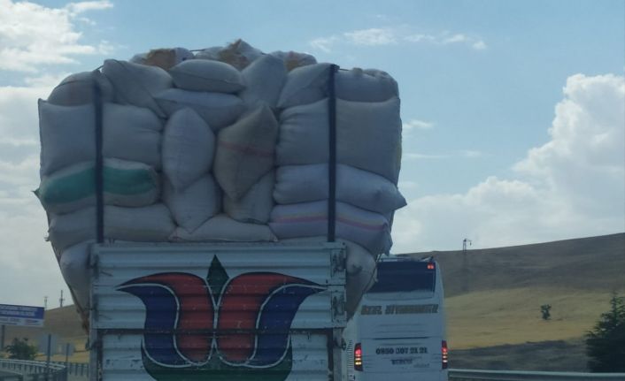 Elazığ’da hasat döneminin ardından satılan samanlar, özellikle kışın sert geçen ve ağırlıklı olarak besi hayvancılığı yapılan Doğu Anadolu illerine sevk edilmeye başlandı. Çuvallara doldurulan samanlar kamyonlara istifleniyor. Bu şekilde tonlarca ağırlığa ve metrelerce yüksekliğe ulaşan kamyonlar, karayollarında tehlike oluşturuyor.