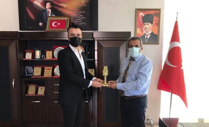 Paramedik Mehmet Özmen’e ödülü, İl Sağlık Müdürü Prof. Dr. Cahit Polat tarafından verildi.
