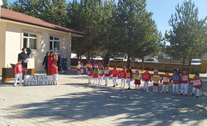 Anaokulu Müdürü ve sınıf öğretmenleri tarafından düzenlenen organizasyonda minikler, ellerinde bayraklarla okul bahçesinde marşlar söyleyerek tur attı.