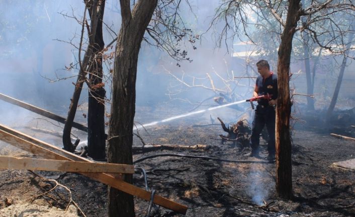 Soğutma işlemi yapan itfaiye ekipleri yangında ahşap inşaat malzemeleri ile meyve ağaçlarının kullanılamaz hale geldiğini belirtti.