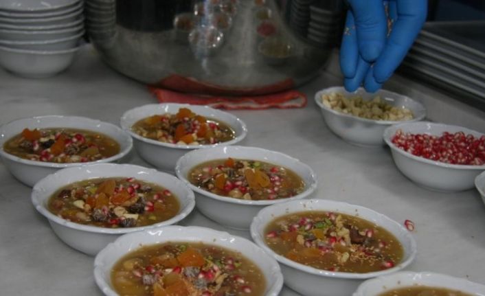 Güzel aşure yapımında malzemelerin çok olmasının ve pişirilme süresinin çok önemli olduğunu vurgulayan ustalar, “Aşurenin yapımı, fasulyesini, nohudunu ve buğdayını bir gece önceden ıslatıyoruz. Sabah erken saatlerde onları haşlamaya başlıyoruz. 1-1,5 saatte haşlanmaları sürüyor. Haşlama işleminden sonra hepsini bir araya alıp şekerini ilave ediyoruz. Daha sonra şekerle de 45 dakika kaynattıktan sonra diğer malzemelerimizi ilave ediyoruz. Malzemelerimiz görüldüğü gibi incir, ceviz, kayısı, badem, susam ve nar parçacıklarını katarak işlemimizi sonlandırıyoruz. Aşurenin sunuma hazır hale gelmesi için normal bir aşure 2,5 saatte hazır olur” dedi.
