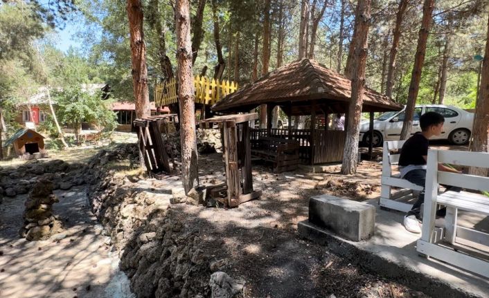 Ayı, geyik, kartal, ceylan ve yaban koyunu maketinin bulunduğu ormanda çeşmelerden su akmazken alanda bulunan süs havuzunun kuruduğu ve ağaç köprünün korkuluklarının kırıldığı görüldü.