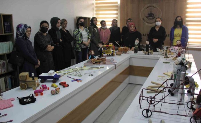 Çocuk Gelişimi ve Eğitimi öğretmeni Gökçe Torun da katılımcılara kurs hakkında bilgiler vererek “Biz bu işe en başta geri dönüşümden yararlanılsın ve çocuklara faydalı bir şeyler yapılsın diye düşünerek oyuncaklarımızı yapmaya başladık. Özellikle oklar, yaylar, tahta arabalar, bez bebekler, beşikler vs. yaptık. Arkadaşlarımız ile çok güzel vakit geçirdik. Çok güzel çalışmaların çıktığını düşünüyorum” diye konuştu.