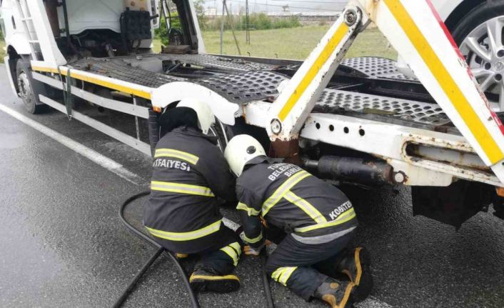 Erzincan’da balataları yanan otomobil yüklü tıra itfaiye ekipleri müdahale ederek yangını büyümeden kontrol altına aldı.