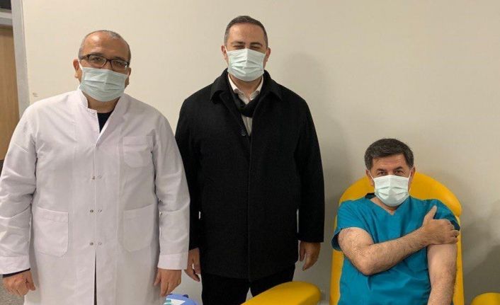 Erzincan Belediye Başkanı Bekir Aksun, Mengücek Gazi Eğitim ve Araştırma Hastanesi’nde Türkiye’ye de uygulanmaya başlanan CoronaVac aşısının ilk dozunu yaptırdı.