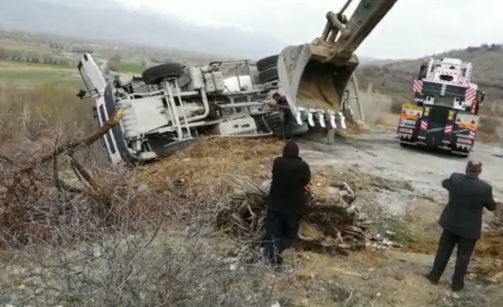 Kaza yapan beton mikseri çekiciyle olay yerinden kaldırıldı.