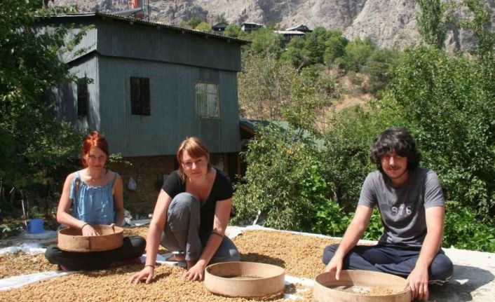 Erzincan’a 164 kilometre uzaklıktaki Kemaliye ilçesinde Buğday Derneği tarafından uygulamaya konulan Tarım, Turizm ve Takas (TATUTA) projesi ile ilçe sakini Latif Yalçıner’in çiftliğine gelen turistler, tatillerini çiftçilik yaparak geçiriyor.