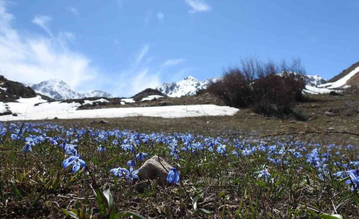 Erzincan’ın Çağlayan Beldesinde Munzur Dağının yamaçlarında karların eridiği alanlarda açan çiğdem ve nergisler kartpostallık manzaralar oluşturuyor.