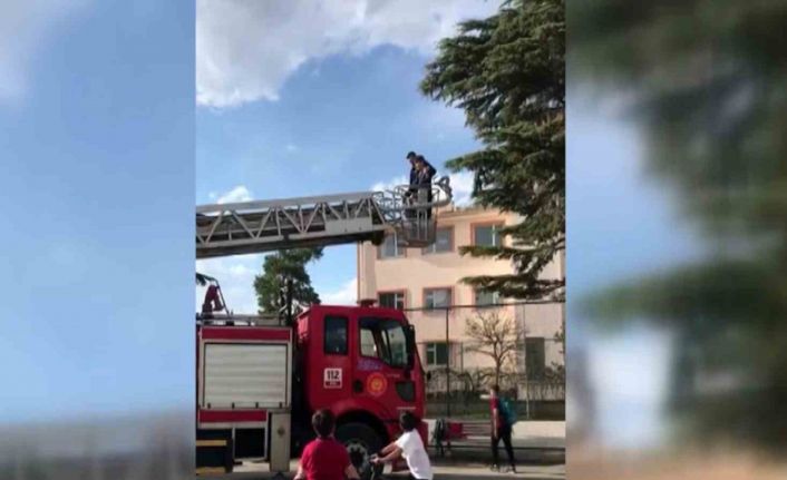 Erzincan’da çıktığı ağaçtan geri aşağıya inemeyen çocuk mahsur kaldı. Çocuğu ağaçtan itfaiye ekipleri indirdi.