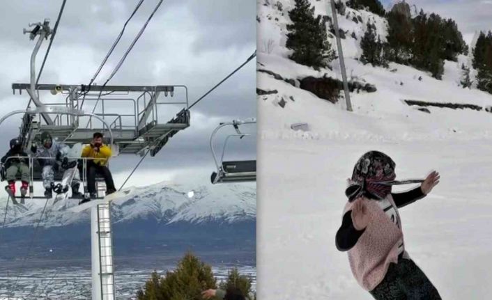 Öte yandan bir vatandaşın kayak kıyafeti yerine kadın elbisesi giyerek yaptığı "Şengül eze" tiplemesiyle snowboard yapması da dikkat çekti. Kayak merkezinde yaşanan bu eğlenceli anlar izleyenleri gülümsetti.