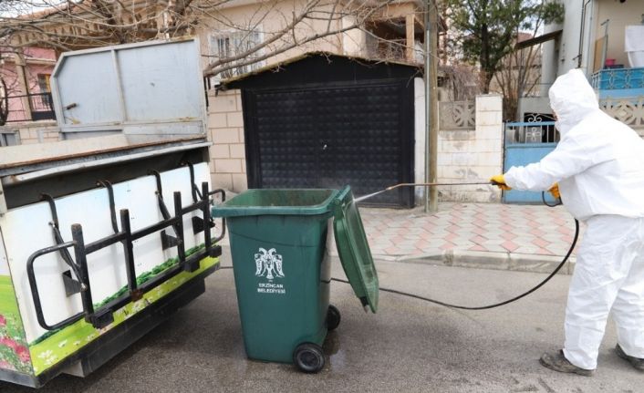 Erzincan’da korona virüs önlemleri kapsamında il genelinde dezenfekte çalışmaları sürüyor. Belediye ekipleri tarafından çöp araçları ile konteynerler, çocuk oyun grupları, cadde ve sokaklar yıkanarak dezenfekte edildi.