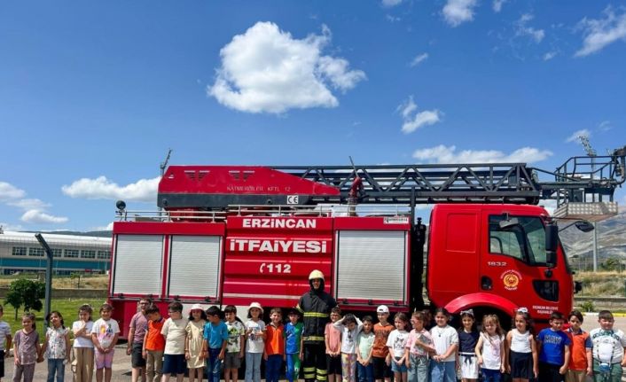 Erzincan Melikşah İlkokulu birinci sınıf öğrencileri öğretmenleri nezaretinde, Erzincan Belediyesi İtfaiye Müdürlüğünü ziyaret etti.