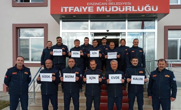 Erzincan Belediyesi itfaiye çalışanları korona virüs ile mücadele kapsamında vatandaşlara ‘Evde kal’ mesajı verdi. İtfaiye çalışanları sosyal medya üzerinden yaptıkları görsel ile vatandaşlara çağrıda bulundu.