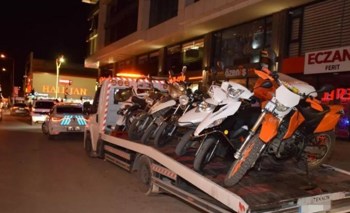 19.30- 20.30 saatleri arası Atatürk Mahallesi Ali Kemali Caddesi üzerinde, 21.00- 22.00 saatleri arası Yavuz Selim Mahallesi Bahçesaray Caddesi üzerinde motosikletler üzerinde gerçekleştirilen denetimlerde; 63 araç/sürücüsü kontrol edilerek 8 motosiklet, 1 otomobil olmak üzere toplam 9 araç otoparka çekildi.