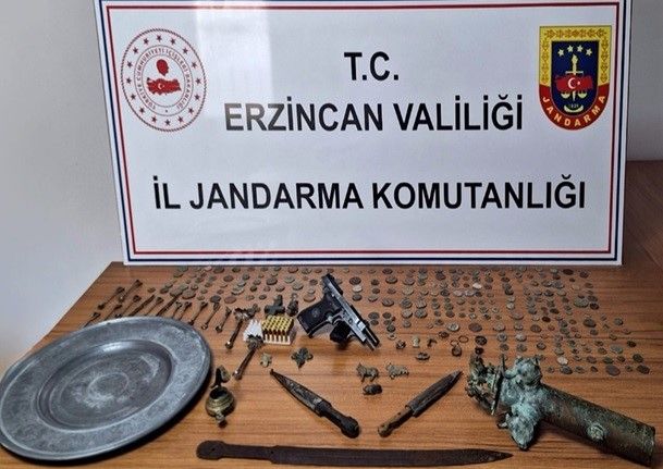 Erzincan’da jandarma tarafından Kültür ve Tabiat Varlıkları Kaçakçılığı ile Göçmen Kaçakçılığı suçlarının önlenmesi dahilinde yapılan çalışmalarda 239 adet sikke ile çeşitli tarihi eserler ele geçirildi.