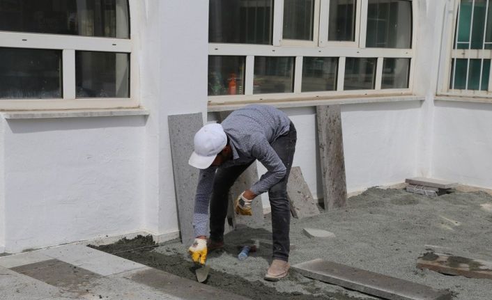 Erzincan’da Aslanlı Mahallesi’nde bulunan Mehmet Türker Camii ve Külliyesi’nde bahçe ve çevre düzenlemesi çalışmaları gerçekleştirdi. Düzenleme çalışmalarında cami avlusunda yer alan zamanla tahrip olan mevcut zemin sökülerek andezit taşı ile kaplandı. Avlu girişi ve cami girişinde yer alan merdivenlerde andezit taşı ile kaplanarak vatandaşların kullanıma hazır hale getirildi.