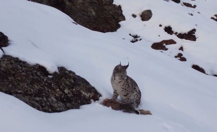 Erzincan’ın Refahiye ilçesinde, nesli tükenme tehlikesi altında bulunan vaşak, avladığı tavşanla birlikte görüntülendi. Sosyal medyada "Doğadaki Kız" olarak tanınan Berfin Karataş’ın kaydettiği görüntüler kısa sürede büyük ilgi gördü.