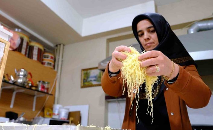 Erzincan’da iftar sofralarının vazgeçilmez lezzeti: “Kesme kadayıf tatlısı”