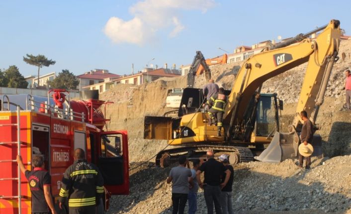 Erzincan Devlet Hastanesi inşaat çalışmalarını yürüten iş makinasında yangın meydana geldi.
