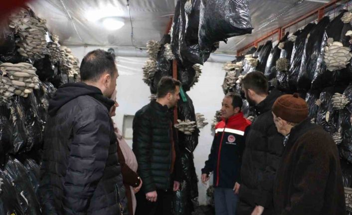 Erzincan İl Tarım ve Orman Müdürü Alper Koçaker, Üzümlü İlçe Tarım ve Orman Müdürü Dilek Özgül ile birlikte istiridye mantarı üretimine başlayan İkram Çamur’u ziyaret etti.