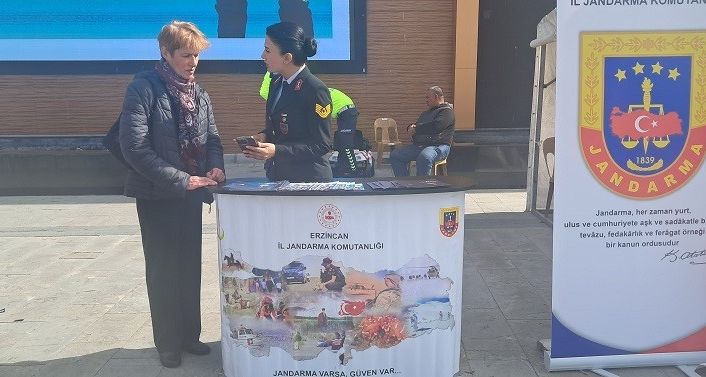 Karayolu Trafik Haftası kapsamında Erzincan’da İl Jandarma Komutanlığı trafik jandarma açtığı stant ile kadın ziyaretçilerini Kadın Destek Uygulaması (KADES) hakkında bilgilendirerek telefonlarına yüklemeleri sağlandı.