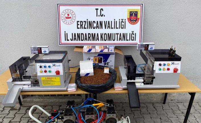 Erzincan’da jandarma ekiplerince bir ev ve eklentilerinde yapılan aramada kaçak sigara yapımında kullanılan malzemeler ele geçirildi.