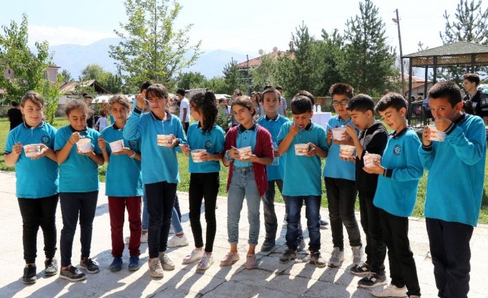 Erzincan’da bolluk bereket, hoşgörü, paylaşım, kurtuluş ve şükrün bir nişanesi olan aşure geleneği okullarda yaşatılıyor. Ulalar Anadolu Lisesinde düzenlenen aşure günü etkinliğinde öğretmenler ve veliler tarafından pişirilen aşureler minik öğrencilere dağıtıldı.