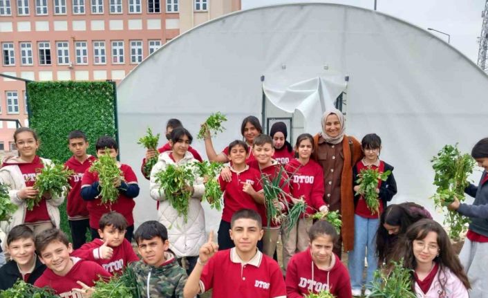 Türkiye genelinde 28 ilde uygulanan proje kapsamında Okuldaki Çiftlik uygulamasına katılan öğrenciler, okullarında bulunan serada kış döneminde maydanoz, roka, taze soğan gibi yeşillikler yetiştirmeyi başardılar.