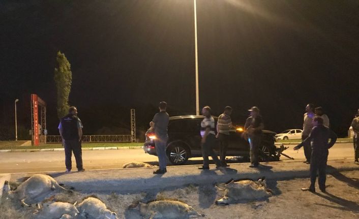 Erzincan’da karayoluna çıkan sürüye otomobil daldı. Kazada 25 koyun telef oldu.
