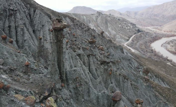 Erzincan’ın Kemah ilçesine bağlı Muratboynu köyü sınırlarında yer alan ve Kapadokya’daki peri bacalarını andıran doğal oluşumlar, bölgeden geçen yerli ve yabancı turistlerin ilgisini çekiyor.