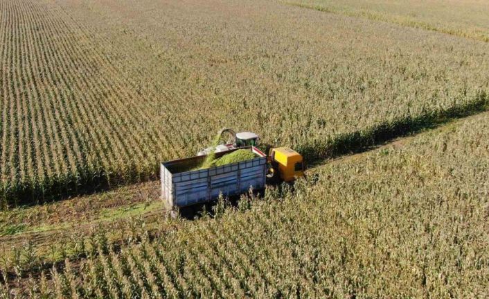 Yaz boyunca yetiştirilen mısırın hasadı biçerdöver ve traktörlerle yapılıyor. Yapılan hasat sonrası silajları stoklayan çiftçiler, hayvanlarının kışlık yem ihtiyacını karşılamış olacak.