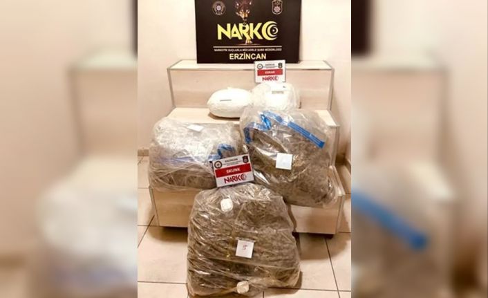 Erzincan İl Emniyet Müdürlüğü Narkotik Suçlarla Mücadele Şube Müdürlüğünce uyuşturucu madde ticareti yapan şahıslara yönelik yapılan operasyonlarda; öncü-artçı olarak hareket ettikleri değerlendirilen iki araç kovalama neticesinde durdurularak araçtaki M.A., S.D., D.B. ve Afganistan uyruklu H.M. ve M.A. olmak üzere 5 kişi yakalandı. 2 araçta yapılan aramada daralı ağırlığı 17 bin 400 gram skunk, 4 bin 313 gram kubar esrar maddeleri ele geçirilerek yakalanan kişiler hakkında TCK 188 uyuşturucu veya uyarıcı madde imal ve ticareti suçundan işlem yapıldı. M.A., S.D., D.B. mevcutlu olarak çıkarıldıkları adli makamlarca tutuklanarak cezaevine gönderildi.