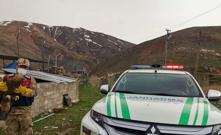 Erzincan’ın Tercan ilçesinde Tercan İlçe Jandarma Komutanlığı Yollarüstü Jandarma Karakol Komutanlığınca icra edilen devriye faaliyetinde yaralı halde Kaya Kartalı bulundu.