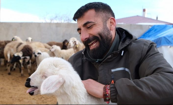 Başpınar Mahallesi’nde hayvancılık yapan üreticilerden İbrahim Erel, yeni doğan kuzularını kucağına almanın mutluluğunu kaydetti.