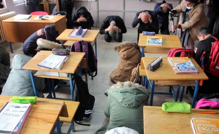 Erzincan’da Cumhuriyet Ortaokulunda Deprem Haftası etkinlikleri kapsamında 81 ille eşzamanlı deprem tatbikatı yapıldı.