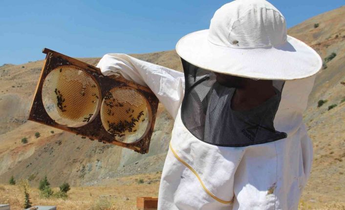 Erzincan’da, kavurucu sıcak altında giydikleri özel kıyafetler ve taktıkları maskelerle bal hasadı yapan arıcılar verimli bir yıl geçirmenin sevincini yaşıyor.