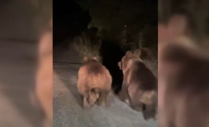 Edinilen bilgiye göre, Erzincan’dan bir vatandaş Kalecik köyüne otomobiliyle seyir halindeyken yolda iki boz ayıya denk geldi. Aracın önünde uzun süre koşan ayılar karanlıkta gözden kayboldu.
