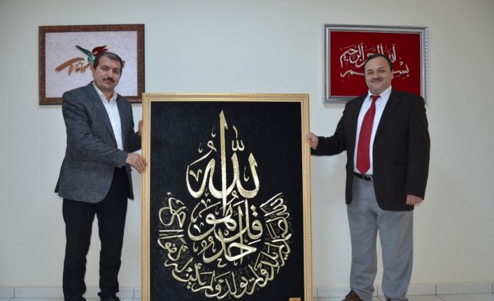 Tercan Müftüsü Hekim Şahin’e Halk Eğitim Merkezi Müdürü Yahya Güneş tarafından teslim edilen tablo büyük beğeni topladı. Halk Eğitim Merkezi Müdürü Yahya Güneş, “El sanatları öğrencilerimizin uzun bir sürede yaptıkları el emeği göz nuru bu tabloları, mübarek Ramazan ayının başlamasından dolayı bu manevi tabloları camilerimize hediye eden ve emeği geçen öğrencilerimize teşekkür ediyorum. Bundan ötürü büyük bir mutluluk duymaktayız” dedi.