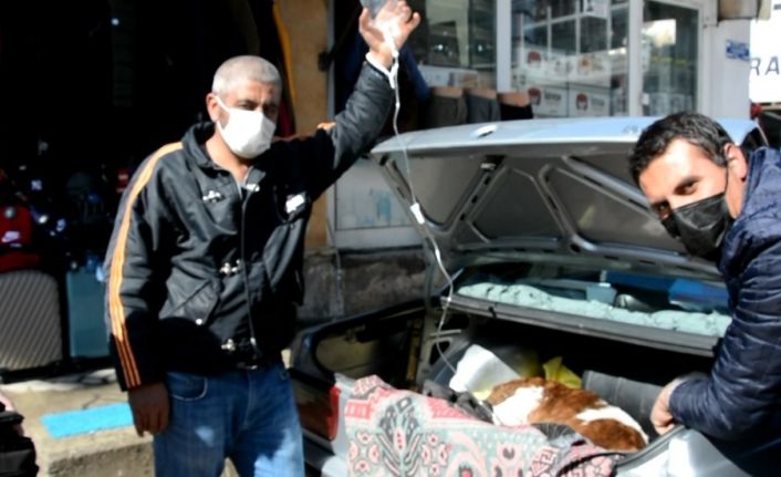 Buzağıyı Tercan’a bağlı Kökpınar köyünden getirdiğini kaydeden Mahmut Gül, “1 hafta önce doğdu. Hasta oldu. Annesinin sütünü içmiyor. İshal olmuş. Veteriner serum verdi” dedi.