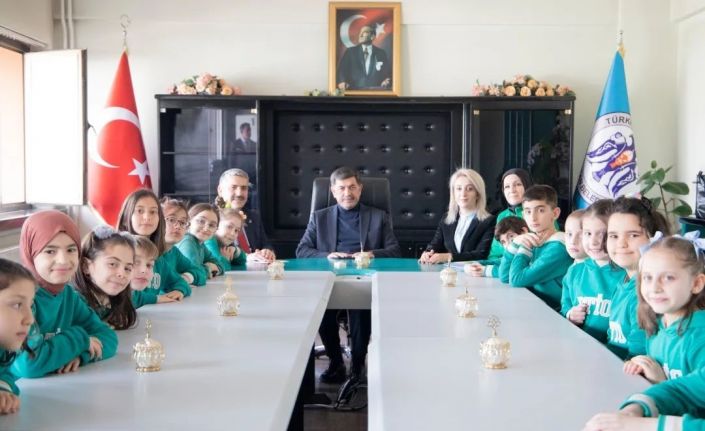 Demirkent TOKİ İlkokulu 3/A sınıfı öğrencileri, Belediye Başkanı Bekir Aksun’u ziyaret ederek geliri depremzedelere ulaştırılacak olan kitabın imza günü programının davetiyesini verdiler.