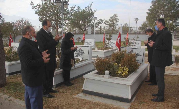 Erzincan’da 24 Kasım etkinlikleri kapsamında hayatını kaybeden öğretmenler ve şehitler kabri başında dualarla anıldı.