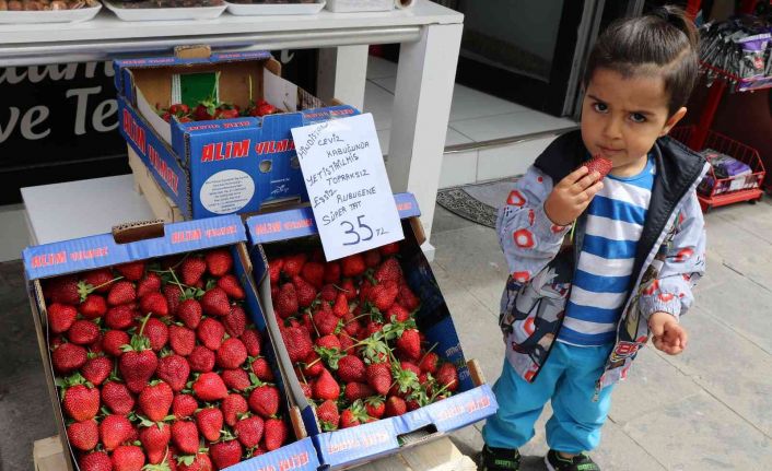 Hindistan cevizi kabuğuyla üretilen çilek Erzincan’da satışa sunuldu