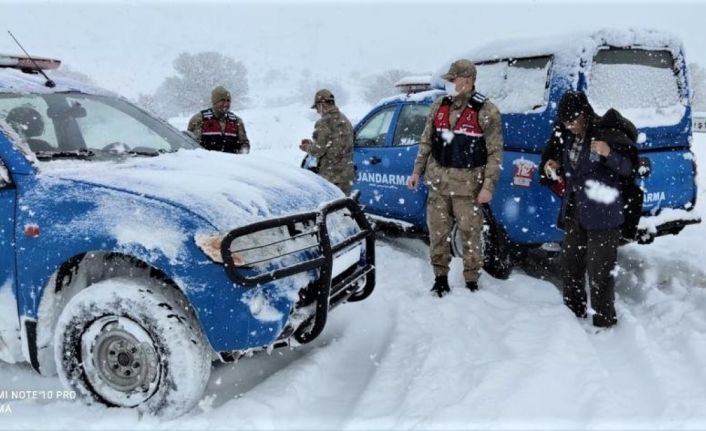 Jandarmadan yolda mahsur kalanlara yardım