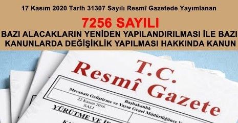7256 sayılı Bazı Alacakların Yeniden Yapılandırılması ile Bazı Kanunlarda Değişiklik Yapılması Hakkında Kanunun 17 Kasım 2020 tarihinde yayımlanarak yürürlüğe girdiğini belirtilen açıklamada, vatandaşlara çağrıda bulunuldu. Yapılandırma kanunuyla vatandaşların kamuya olan borç yükünün azalacağı belirtilirken, kanundan yararlanmak isteyen vatandaşlar 31 Aralık 2020 tarihine kadar Vergi Dairesi’ne başvuru yapmaları gerektiği ifade edildi.
