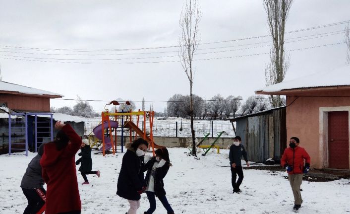 Kar yağışı Erzincan’ın Çayırlı ilçesinde küçük öğrenciler için neşe kaynağı oldu. Teneffüse okul bahçesine çıkan çocuklar kartopu oynayarak eğlenceli vakit geçirdi.