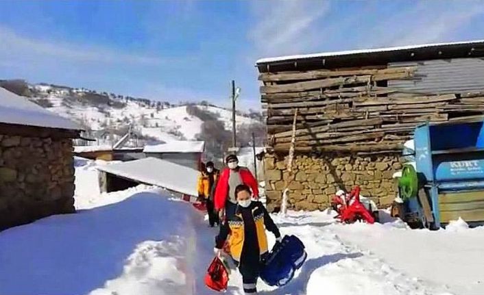 Erzincan’da korona virüs (Covid-19) salgınına karşın yoğun çaba gösteren vefakâr sağlıkçılar bir yandan da karlı yolları aşarak hastalara şifa kaynağı oluyorlar.