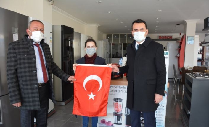Kaymakamlıktan esnafa bayrak hediyesi