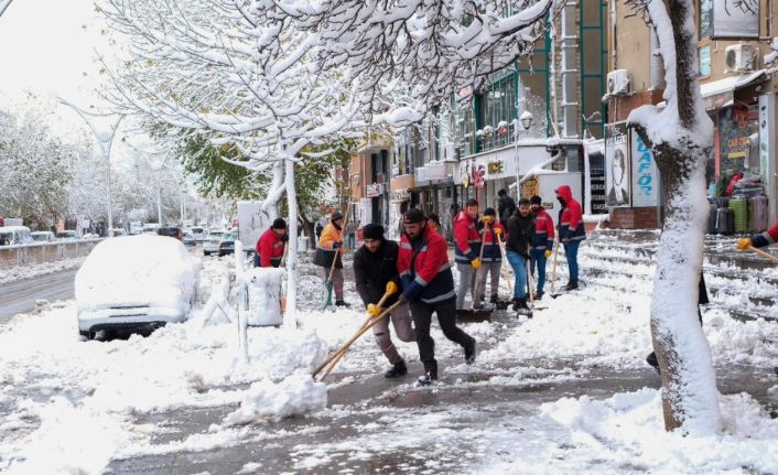 Erzincan’da etkisini gösteren yoğun kar yağışı ile birlikte şehir genelinde hayatın normal seyrinde devam etmesi ve ulaşımın aksamaması için kar küreme çalışması yapıldı.
