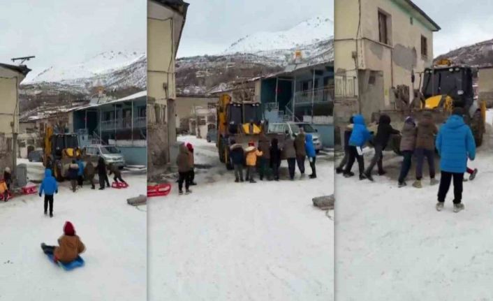 Tuzlama çalışmasının başlamasıyla birlikte kızak keyfinin sona ereceğini anlayan çocuklar, kızak yollarını korumak için kepçenin önünde durarak çalışmayı engellemeye çalıştı. Kepçe operatörü ise yol güvenliği açısından tuzlama yapılmasının gerekli olduğunu anlatarak çocukları ikna etmeye çalıştı.
