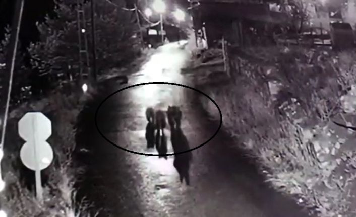 Köyün sokaklarında dolaşan 3 ayı güvenlik kamerasına yansıdı